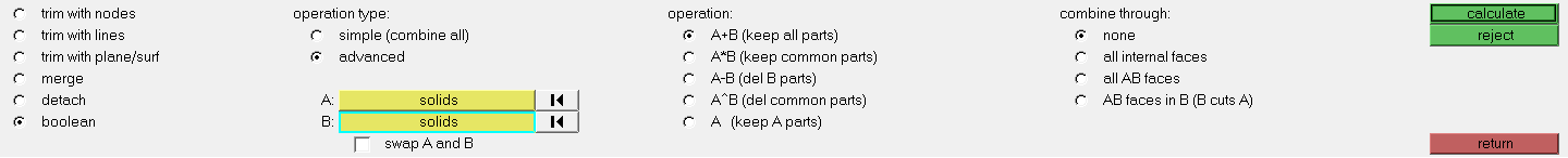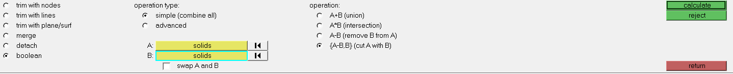Geometry > Edit > Solids > Boolean
