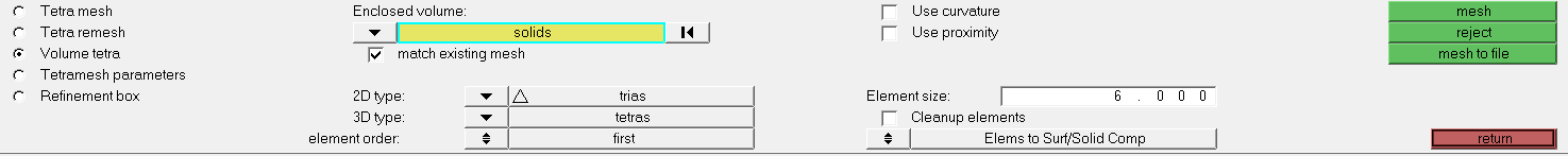 • Select all the surfaces to mesh (click on surfs, then on all to mesh all)