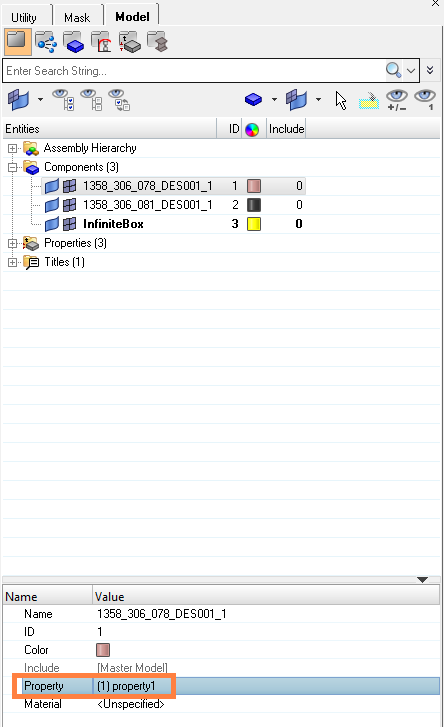 • Assign to each component a property: for that, select a component in the data tree and choose the property in the window below