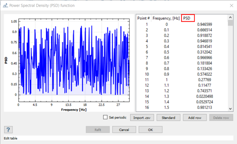 - 您可以选择激励类型(加速度)、频率/功率谱密度函数、缩放振幅和方向。