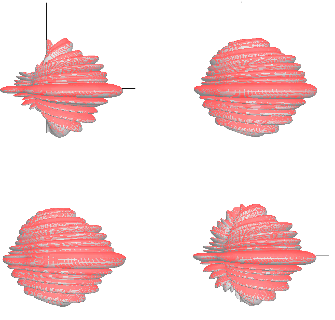 The antenna 741 794 is a sector antenna with 65° horizontal and 7° vertical half-power beam width and 2° electrical downtilt. The horizontal and vertical patterns of this antenna are given in Figure 1 while the real, measured, 3D pattern is visualized in Figure 2. The sketch of the 3D pattern is taken from a side view, the main lobe of the antenna characteristic is oriented towards the right. The views in Figure 3 represent the interpolated 3D patterns for the four different interpolation algorithms. Similar to the measured 3D antenna pattern also these figures show the side view of the antenna with the main lobe oriented towards the right.